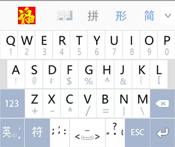 福缘26键英文键盘基于传统QWERTY键盘优化而成。26个英文字母键单击是小写字母,上滑是大写字母。与九宫格键盘一样,键盘摈弃了Shift键。
